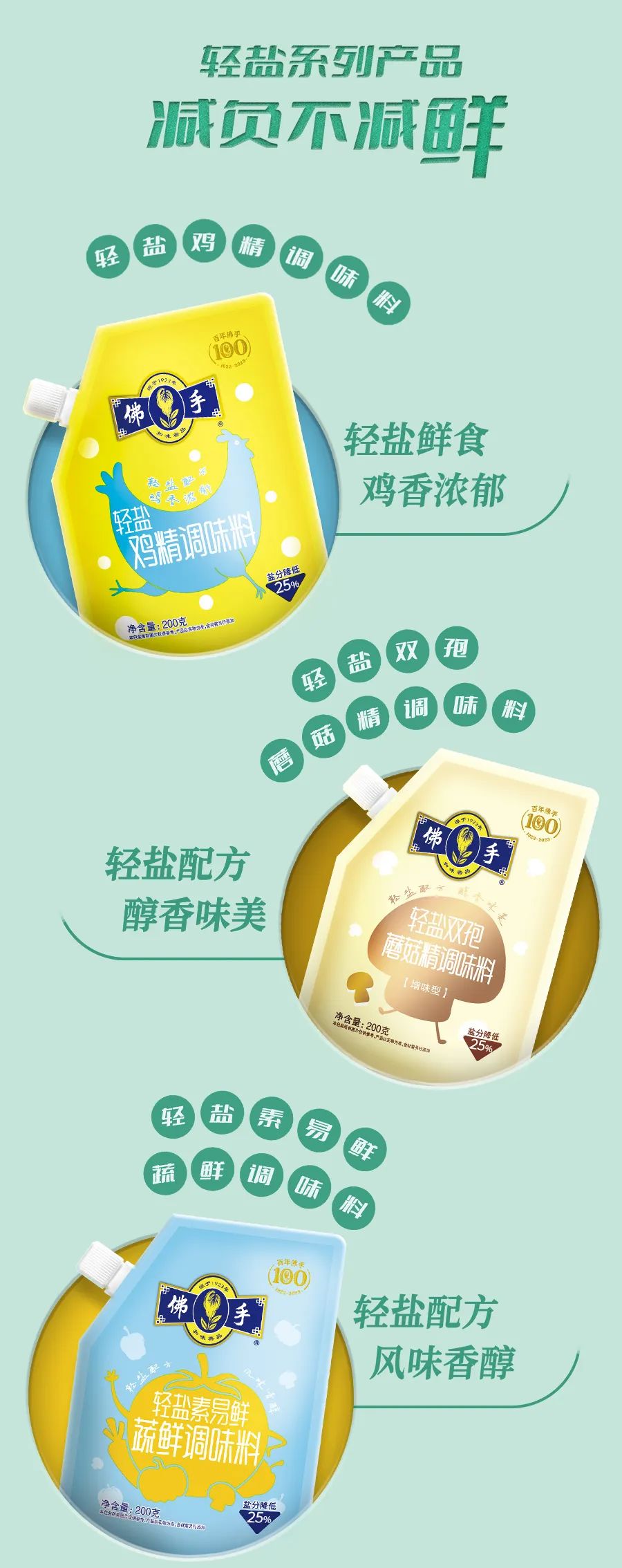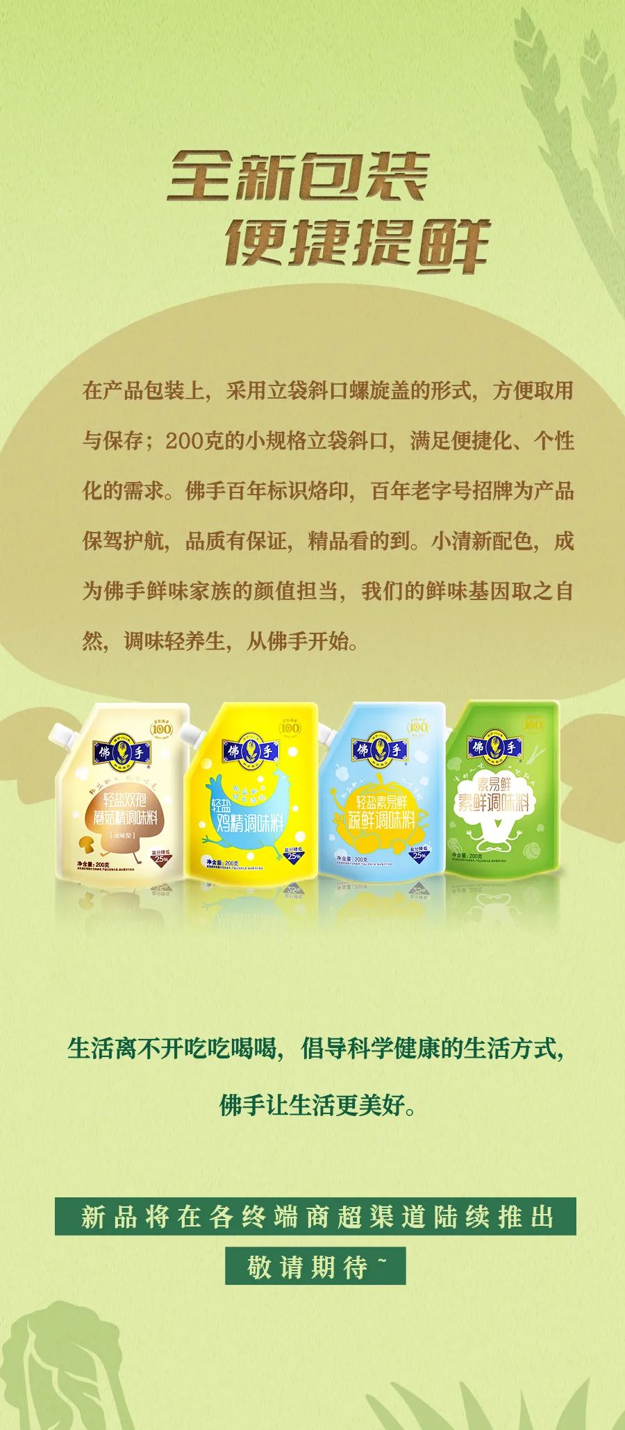涵養(yǎng)綠色養(yǎng)生,注重日常飲食 從一日三餐開始,吃出自然好滋味 佛手新品——輕鹽系列產(chǎn)品,減負(fù)不減鮮!
